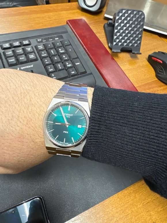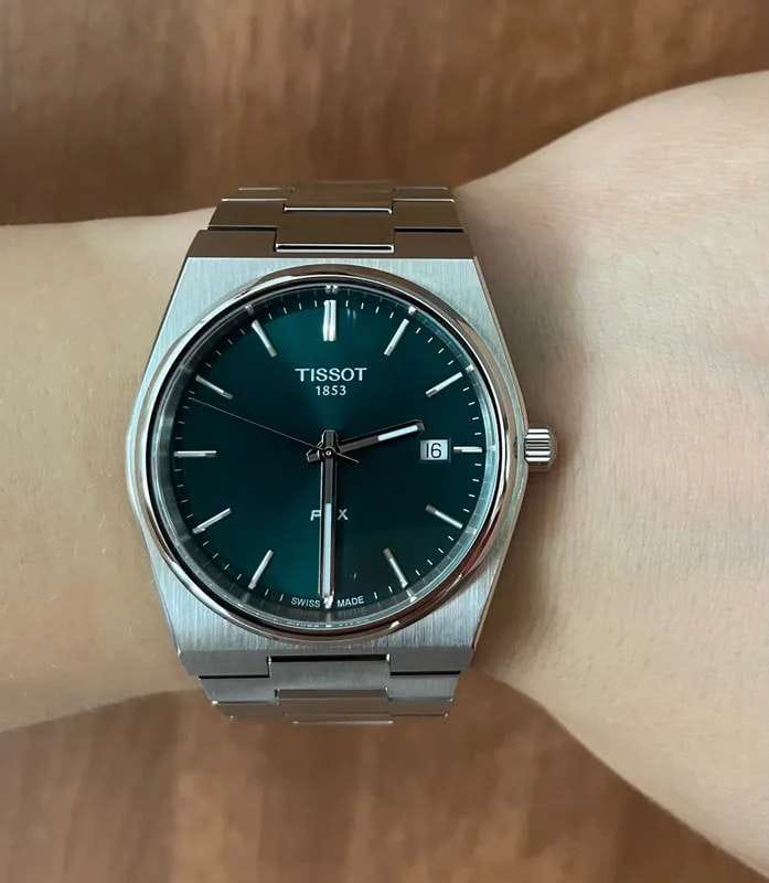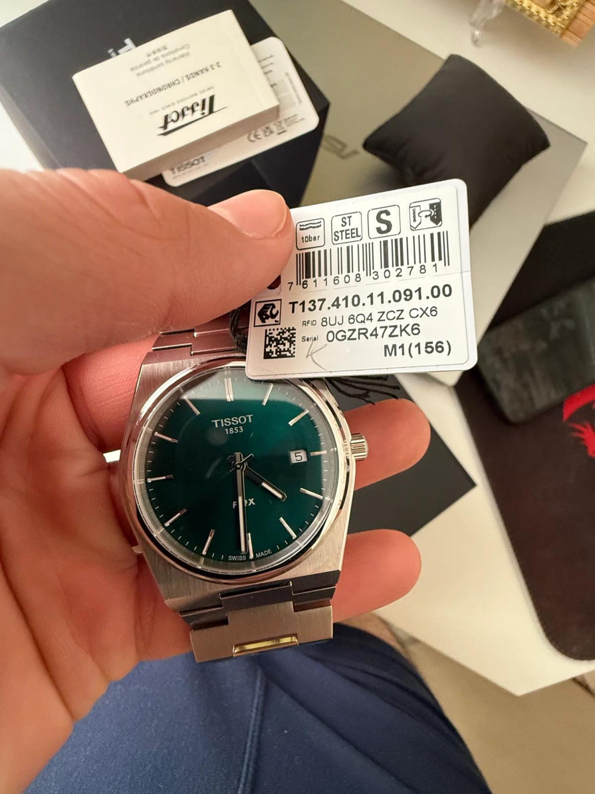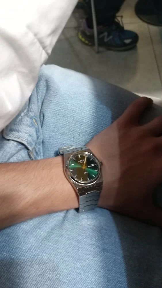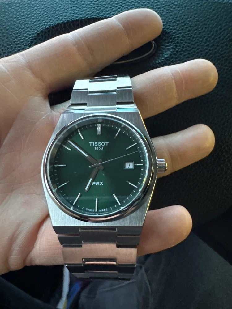Tissot PRX 40mm (модель T137.410.11.091.00) – элегантные мужские часы, сочетающие современный стиль с передовыми технологиями. Корпус диаметром 40 мм выполнен из нержавеющей стали 316L, что обеспечивает надёжность и долговечность. Зелёный циферблат с эффектом солнечных лучей защищён сапфировым стекломСапфировое стеклоПрочный и надёжный материал из кристалла сапфира синтетического происхождения, характеризующийся особой твёрдостью и устойчивостью к царапинам и повреждениям., устойчивым к царапинам.