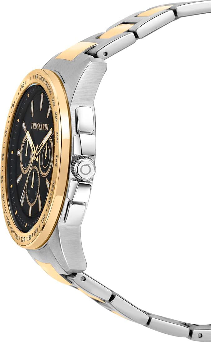 Итальянские мужские часы Trussardi T-Hawk R2453153003 - это стильный мужской аксессуар, который сочетает элегантный дизайн и практичность. Корпус выполнен из нержавеющей стали с безелемБезельВнешний ободок, закрепляющий стекло. В спортивных часах так называется поворотное кольцо с делениями на циферблате, выполняет роль таймера – замеряет отрезки времени на шкале. Неподвижный безель – элемент декора. Однонаправленно вращающийся безель на дайверских часах позволяет фиксировать моменты погружения и выныривания на поверхность. с IP-покрытиемIP-покрытиеМетод ионного напыления. Демонстрирует повышенную устойчивость к истиранию, окислению и химическим веществам. Под воздействием высокого давления и температуры около 1500°C молекулы металла надёжно соединяются с частицами корпуса часов., что обеспечивает долговечность и утончённый внешний вид. Шкала тахиметраТахиметрРазмеченная шкала, располагается на ободке или безеле часов. Тахиметр позволяет рассчитать скорость на определённом участке пути, расстояние измеряется в километрах или милях. на безелеБезельВнешний ободок, закрепляющий стекло. В спортивных часах так называется поворотное кольцо с делениями на циферблате, выполняет роль таймера – замеряет отрезки времени на шкале. Неподвижный безель – элемент декора. Однонаправленно вращающийся безель на дайверских часах позволяет фиксировать моменты погружения и выныривания на поверхность.. Надежное минеральное стеклоМинеральное стеклоМинеральное стекло представляет собой искусственно выращенный минерал кварца. Такое стекло отличается особой устойчивостью к повреждениям и царапинам. Уступает по некоторым качествам сапфировому стеклу. защищает циферблат от царапин и обеспечивает долговечность. Модель оснащена кварцевым механизмом, обеспечивающим высокую точность хода. Браслет из нержавеющей стали с частичным IP-покрытиемIP-покрытиеМетод ионного напыления. Демонстрирует повышенную устойчивость к истиранию, окислению и химическим веществам. Под воздействием высокого давления и температуры около 1500°C молекулы металла надёжно соединяются с частицами корпуса часов. с раскладной застёжкойРаскладная застёжкаТакой тип застёжки используется только на браслетах из металла. Она никогда не раскрывается полностью, происходит разделение на 2 и более частей. Раскладывающая застёжка снизит вероятность потери часов к минимуму. обеспечивает комфортное ношение. Водозащита 50 метров позволит защитить корпус от случайных брызг или капель дождя. Вынесенный циферблат с 24-х и 12- ти часовым указателем времени, а также вынесенный циферблат с хронографомХронографФункция позволяет измерять отрезки времени с особой точностью: часы, минуты, секунды. Верным признаком хронографа является наличие на циферблате 3 дополнительных окошек-счётчиков.. Стрелки и метки оснащены люминесцентным покрытиемЛюминесцентное покрытиеПозволяет считывать показания времени в темноте. Производители наносят на стрелки, часовые индексы, безель или поверхность циферблата светонакопительный состав, дающий холодное свечение., обеспечивающим отличную видимость даже при слабом освещении. Эта модель – отличный выбор для тех, кто ищет сочетание стиля, качества и функциональности. Часы станут не только полезным аксессуаром, но и выразительным элементом вашег