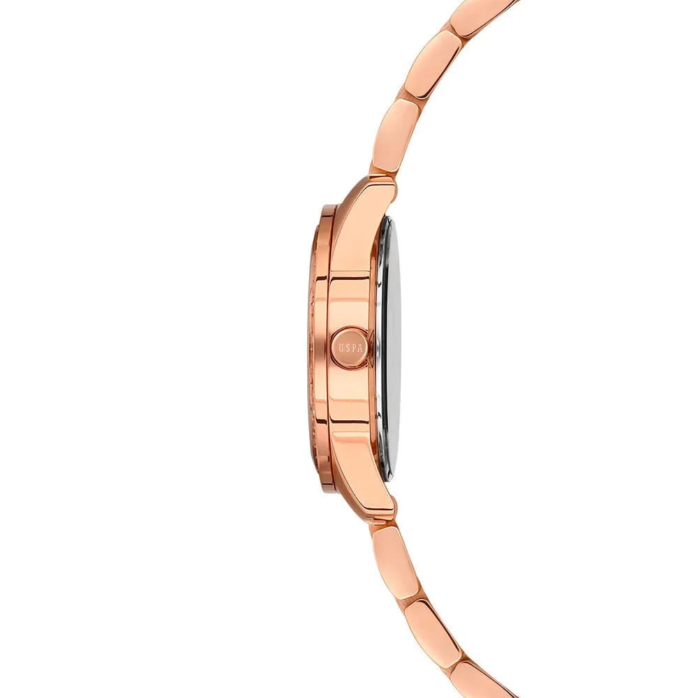 Женские элегантные часы U.S. Polo Assn. Stile USPA2064-02, кварцевый механизм с высокой точностью. Минеральное стеклоМинеральное стеклоМинеральное стекло представляет собой искусственно выращенный минерал кварца. Такое стекло отличается особой устойчивостью к повреждениям и царапинам. Уступает по некоторым качествам сапфировому стеклу. устойчивое к появлению царапин, обладающее высокой прозрачностью. Изысканный корпус изготовлен из нержавеющей стали с IP-покрытиемIP-покрытиеМетод ионного напыления. Демонстрирует повышенную устойчивость к истиранию, окислению и химическим веществам. Под воздействием высокого давления и температуры около 1500°C молекулы металла надёжно соединяются с частицами корпуса часов., а безельБезельВнешний ободок, закрепляющий стекло. В спортивных часах так называется поворотное кольцо с делениями на циферблате, выполняет роль таймера – замеряет отрезки времени на шкале. Неподвижный безель – элемент декора. Однонаправленно вращающийся безель на дайверских часах позволяет фиксировать моменты погружения и выныривания на поверхность. украшен кристаллами. Лаконичные золотистые центральные часовая, минутная и секундная стрелки. Класс водозащиты: 50 метров, позволит защитить корпус от случайных брызг или капель дождя. Стальной браслет с IP-покрытиемIP-покрытиеМетод ионного напыления. Демонстрирует повышенную устойчивость к истиранию, окислению и химическим веществам. Под воздействием высокого давления и температуры около 1500°C молекулы металла надёжно соединяются с частицами корпуса часов. на раскладной застёжкеРаскладная застёжкаТакой тип застёжки используется только на браслетах из металла. Она никогда не раскрывается полностью, происходит разделение на 2 и более частей. Раскладывающая застёжка снизит вероятность потери часов к минимуму. обеспечивает комфорт и удобство в использовании, добавляя завершающий штрих к этому стильному аксессуару. Циферблат подчёркивает изысканный характер часов, создавая универсальный образ, подходящий как для повседневных ситуаций, так и для особых случаев.