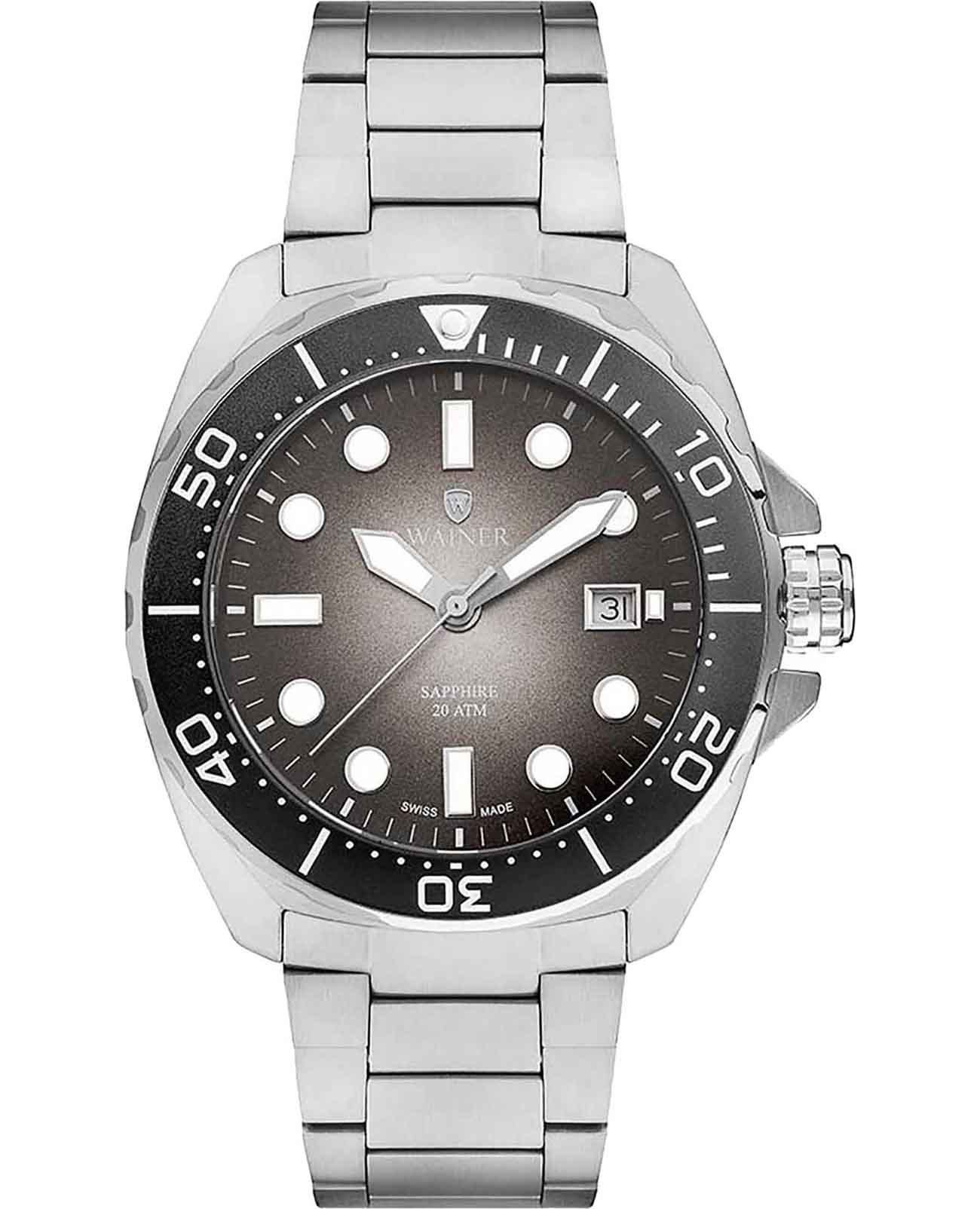Швейцарские мужские кварцевые часы Wainer WA.10921-A с механизмом калибра Ronda 515 сочетают в себе надежность и стильный дизайн. Круглый корпус из нержавеющей стали 316L с частичным PVD-покрытиемPVDУльтратонкое покрытие наносится в технике вакуумного напыления, сочетает в себе нитрид титана особой прочности со слоем золота или оксида хрома. Несёт в себе декоративную или защитную функцию. диаметром 44 мм защищен прочным сапфировым стекломСапфировое стеклоПрочный и надёжный материал из кристалла сапфира синтетического происхождения, характеризующийся особой твёрдостью и устойчивостью к царапинам и повреждениям.. Циферблат украшен фирменным логотипом Wainer, метками в виде точек и штрихов, а также оснащен окошком даты в положении 3 часа. Рифленая заводная головка с защитой обеспечивает дополнительную надежность механизма. Часы имеют класс водозащиты 200 метров, позволит плавать, нырять и заниматься другими водными видами спорта. Модель комплектуется стальным браслетом из нержавеющей стали 316L на застёжке-бабочке с кнопкамиЗастёжка "бабочка"Такой вид застёжки дополняется предохранителями, помогающими избежать случайного раскрытия браслета. Обладают изящным исполнением. . Высокий уровень водонепроницаемости делает эти часы идеальным выбором для активного образа жизни, позволяя не расставаться с ними даже в воде. Прочный корпус и надежный механизм гарантируют долговечность использования.